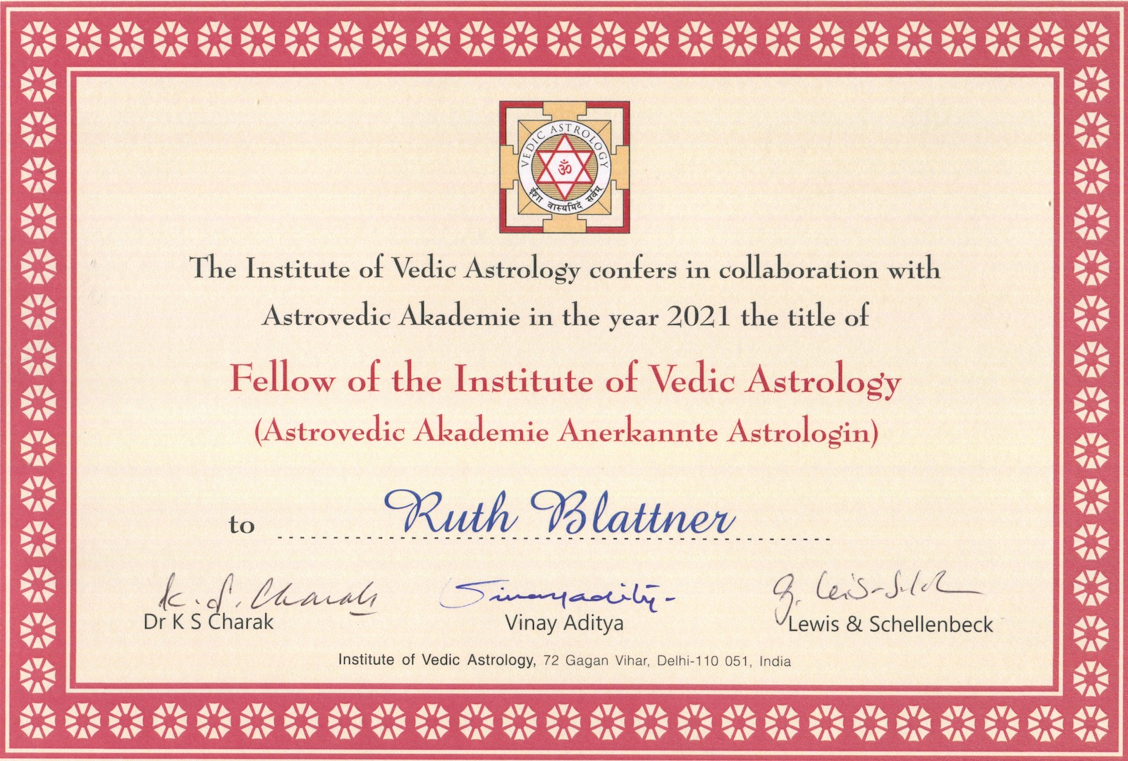 dipl. Vedische Astrologin AAAA/Institute of Vedic Astrology, Dehli/India
